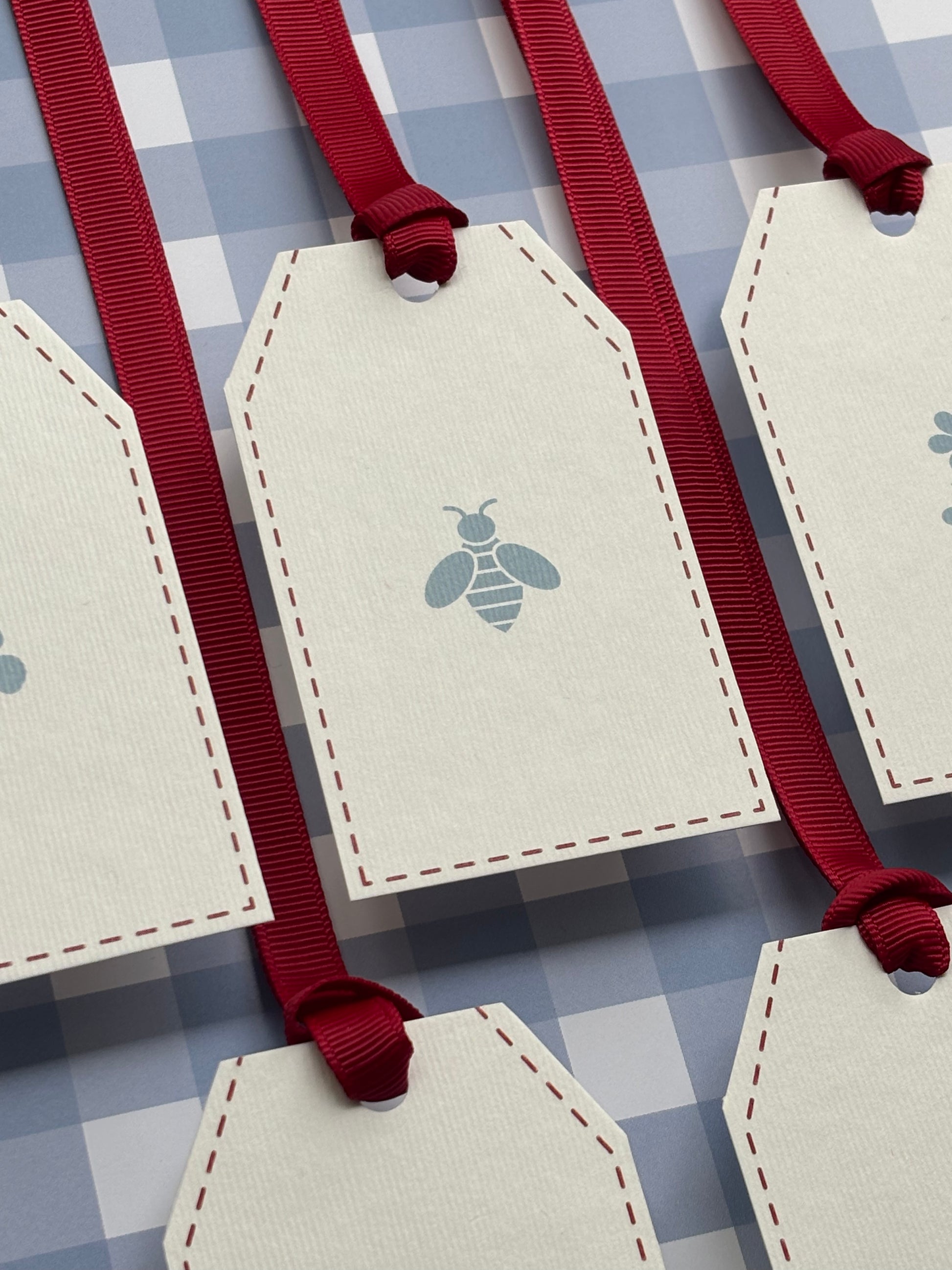 Quantità: n. 5 tag (con nastro di grosgrain rosso incluso)
