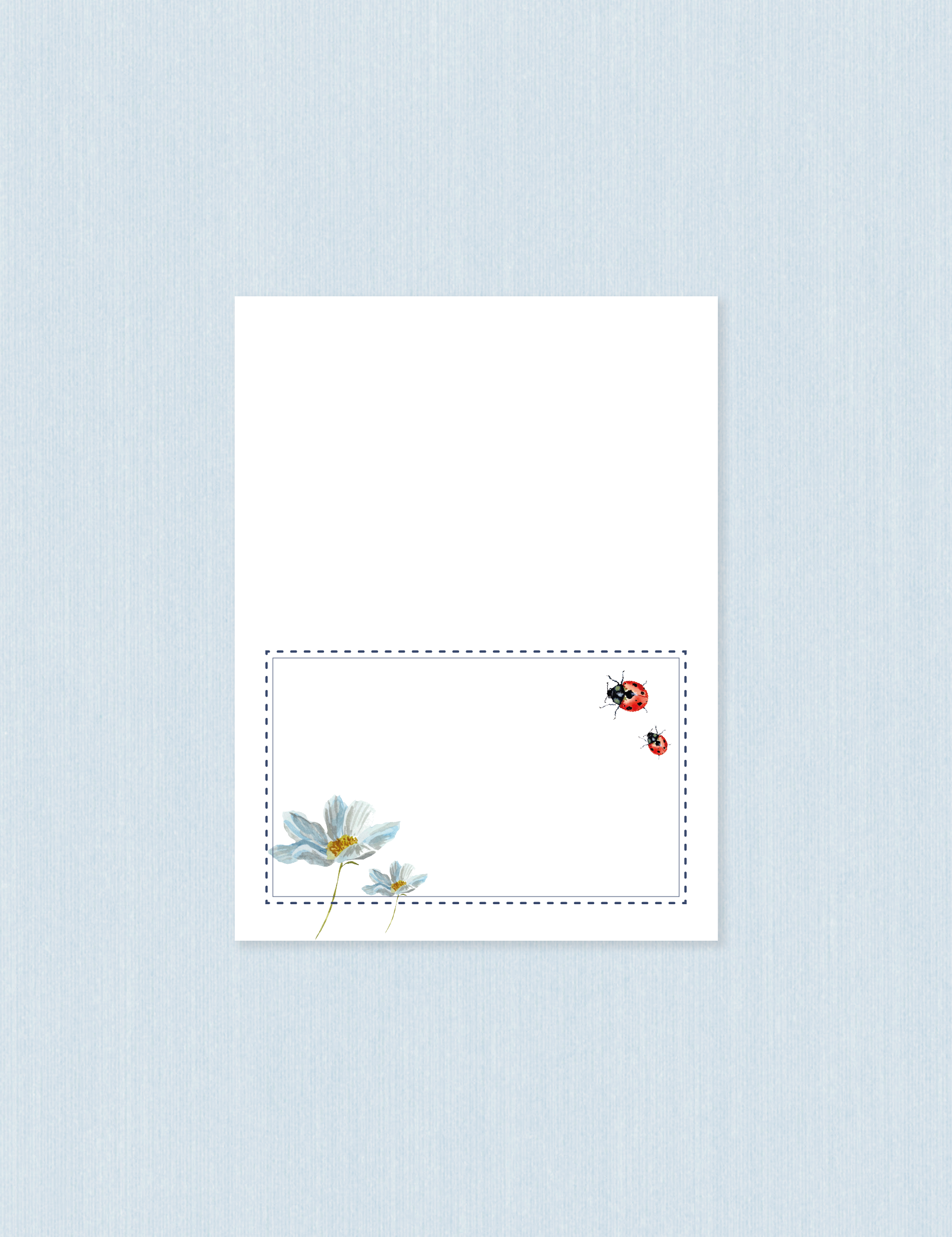 Segnaposto illustrati, stampati in digitale e piegati a cavalierino.