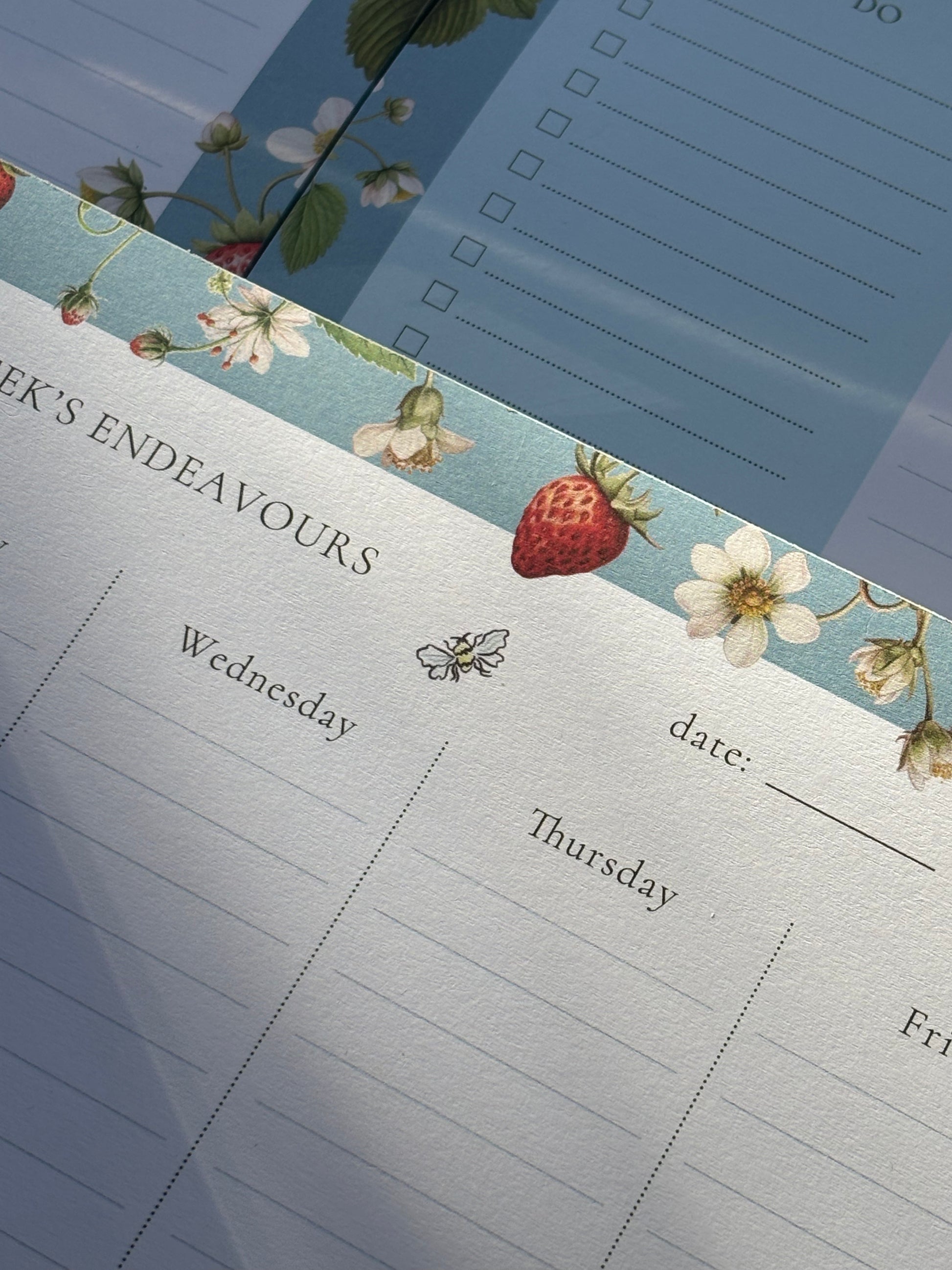 Weekly planner illustrato, stampato in digitale, formato A4 in carta naturale.